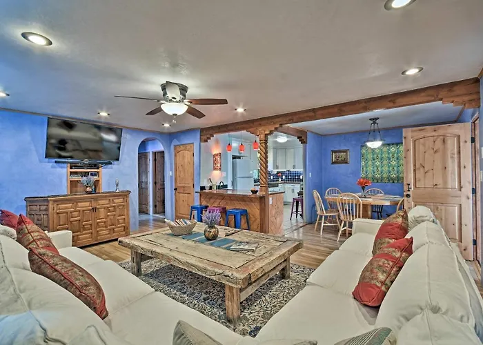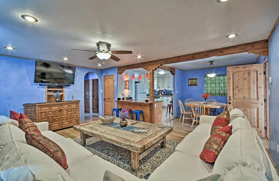 The 2-bedroom Cozy Blue Adobe With Steam Room 2 Mi From Taos! is located 15 minutes by car from Harwood Museum of Art and provides hiking for active guests. This property includes parking and a patio with views of the garden.